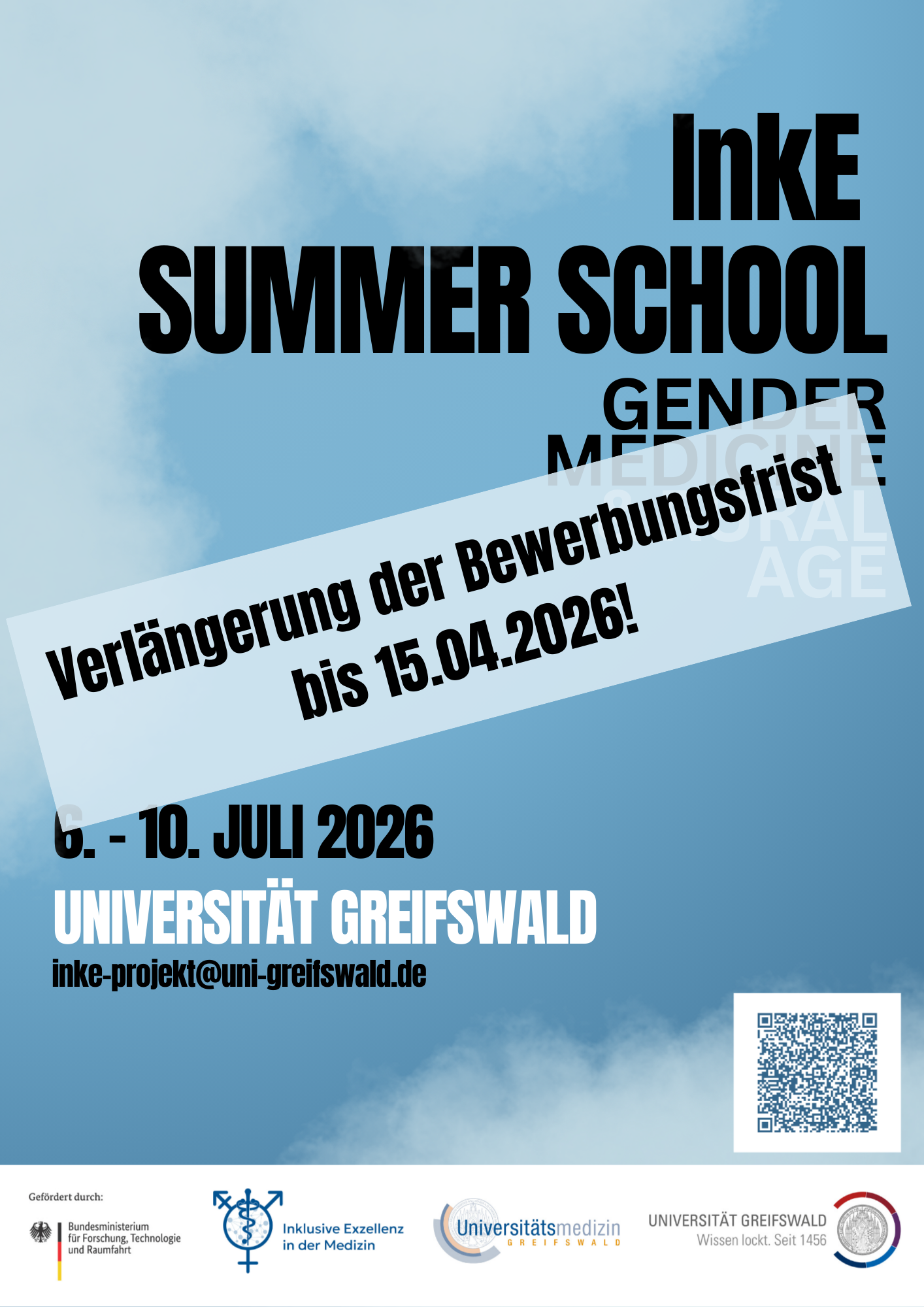 Das Verbundvorhaben „Inklusive Exzellenz in der Medizin (InkE)“ der Universitätsmedizin Greifswald und der Universität Greifswald wird mit Mitteln des Bundesministeriums Forschung, Technologie und Raumfahrt unter den Förderkennzeichen 01FP23G10A und 01FP23G10B gefördert.