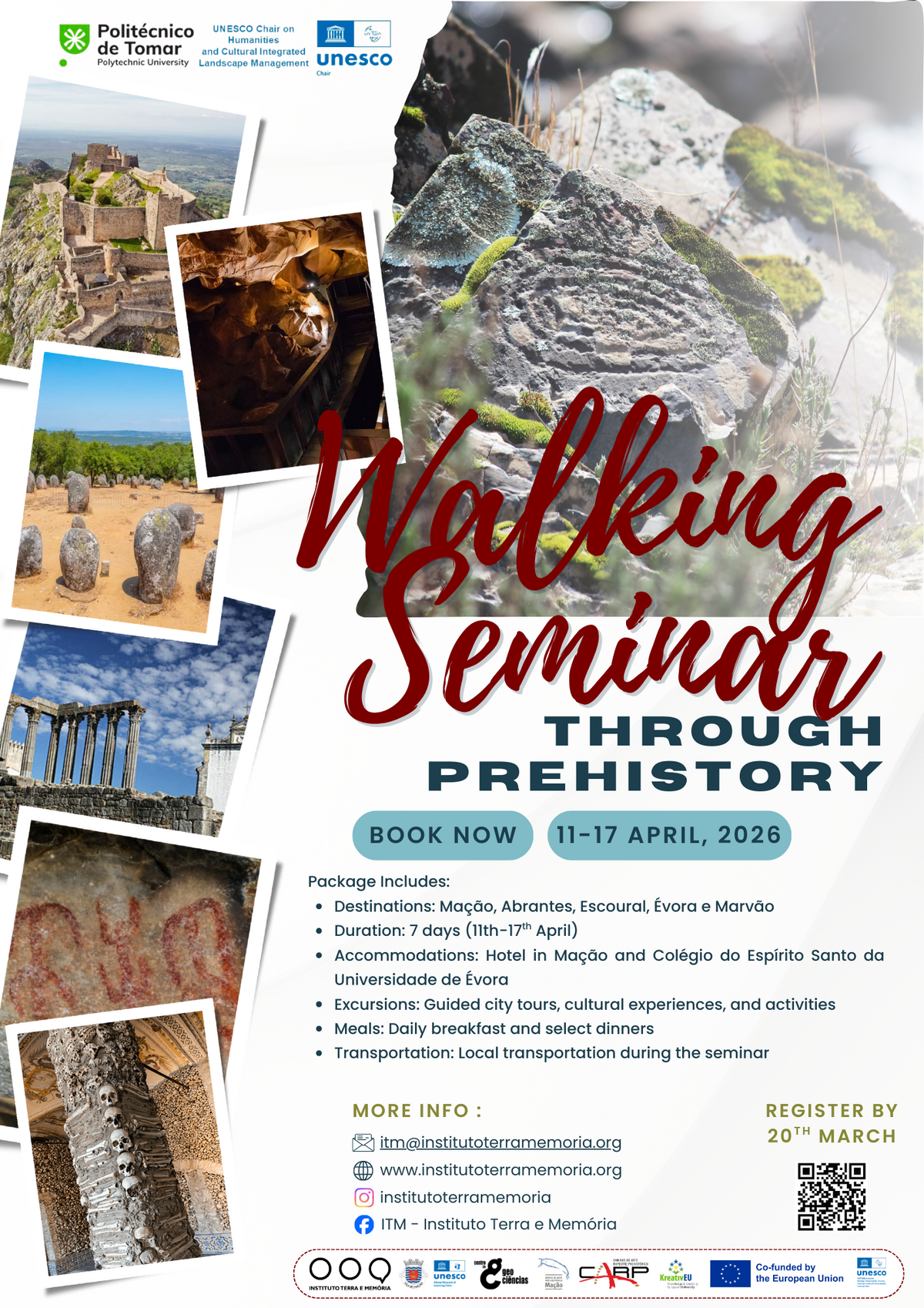 The seminar is organised within the framework of the collaboration between the Instituto Terra e Memória (Mação) and the Polytechnic University of Tomar, and will offer participants a one-week immersive field experience across several archaeological, cultural, and historical landscapes of central Portugal.