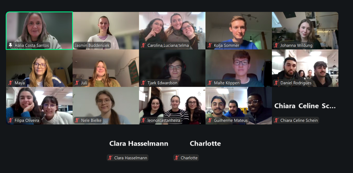 Jasmin Buddensiek and Hália Costa Santos prepared the project in cooperation and presented it to the students, who had two tasks: to analyse the main studies about Media consumption by youth in each country and to fill a diary of their own consumption of Media during one week. Each part was presented in an online session, with the participation of all the students, who discussed their perspectives in break-out rooms and, later, presented the conclusions to whole group.