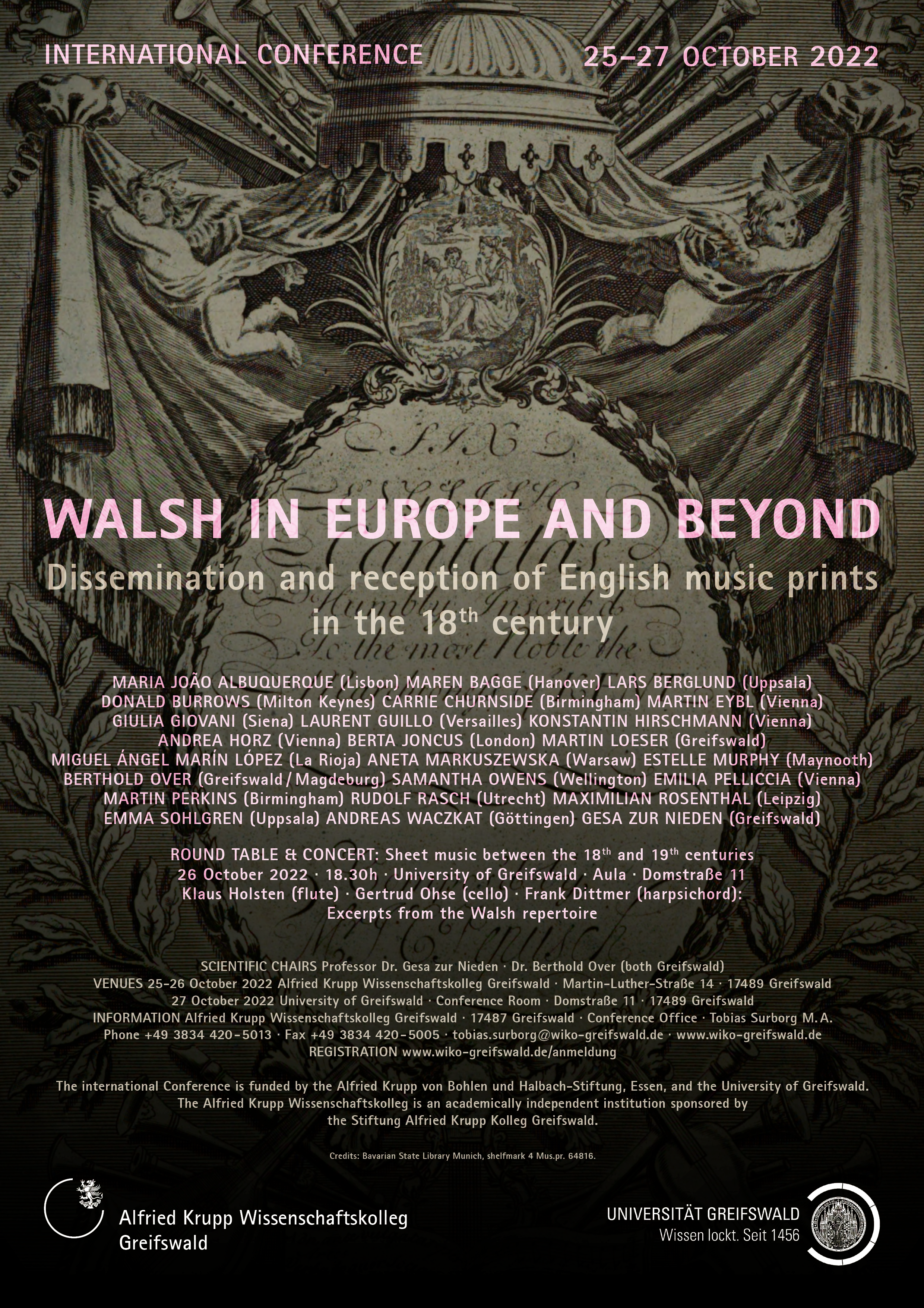Speaker: Maria João Albuquerque (Lisbon) Maren Bagge (Hanover) Lars Berglund (Uppsala) Donald Burrows (Milton Keynes) Carrie Churnside (Birmingham) Martin Eybl (Vienna) Giulia Giovani (Siena) Laurent Guillo (Versailles) Konstantin Hirschmann (Vienna) Andrea Horz (Vienna) Berta Joncus (London) Martin Loeser (Greifswald) Miguel Ángel Marín López (La Rioja) Aneta Markuszewska (Warsaw) Estelle Murphy (Maynooth) Berthold Over (Greifswald / Magdeburg) Samantha Owens (Wellington) Emilia Pelliccia (Vienna) Martin Perkins (Birmingham) Rudolf Rasch (Utrecht) Maximilian Rosenthal (Leipzig) Emma Sohlgren (Uppsala) Andreas Waczkat (Göttingen) Gesa zur Nieden (Greifswald)