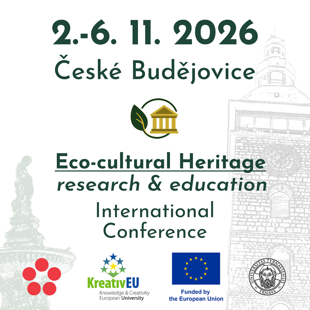Vom 2. bis zum 6. November 2026 findet an der Südböhmischen Universität in Budweis eine internationale Konferenz zum Thema "Ecocultural Heritage - Research & Education" statt.