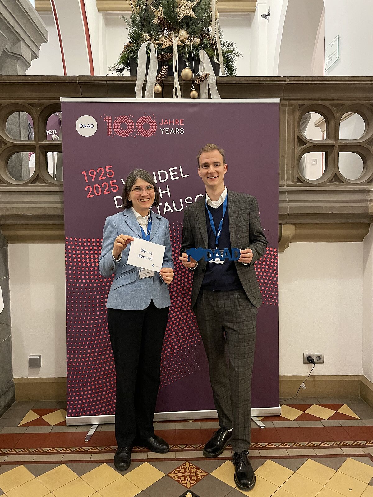 Am 9. und 10. Dezember 2025 fand die Jahrestagung „Europäische Hochschulnetzwerke (EUN) – national Initiative“ in Bonn statt. Alle deutschen Hochschulen, die Mitglieder einer Europäischen Hochschulallianz sind, waren eingeladen, mit einer Person des Projektpersonals und einem*einer Studierenden an der Tagung teilzunehmen. Die UG war durch den studentischen Prorektor Lukas Voigt, der auch UG Student Ambassador von KreativEU ist, und die Projektkoordination an der UG Dorthe G. A. Hartmann vertreten.