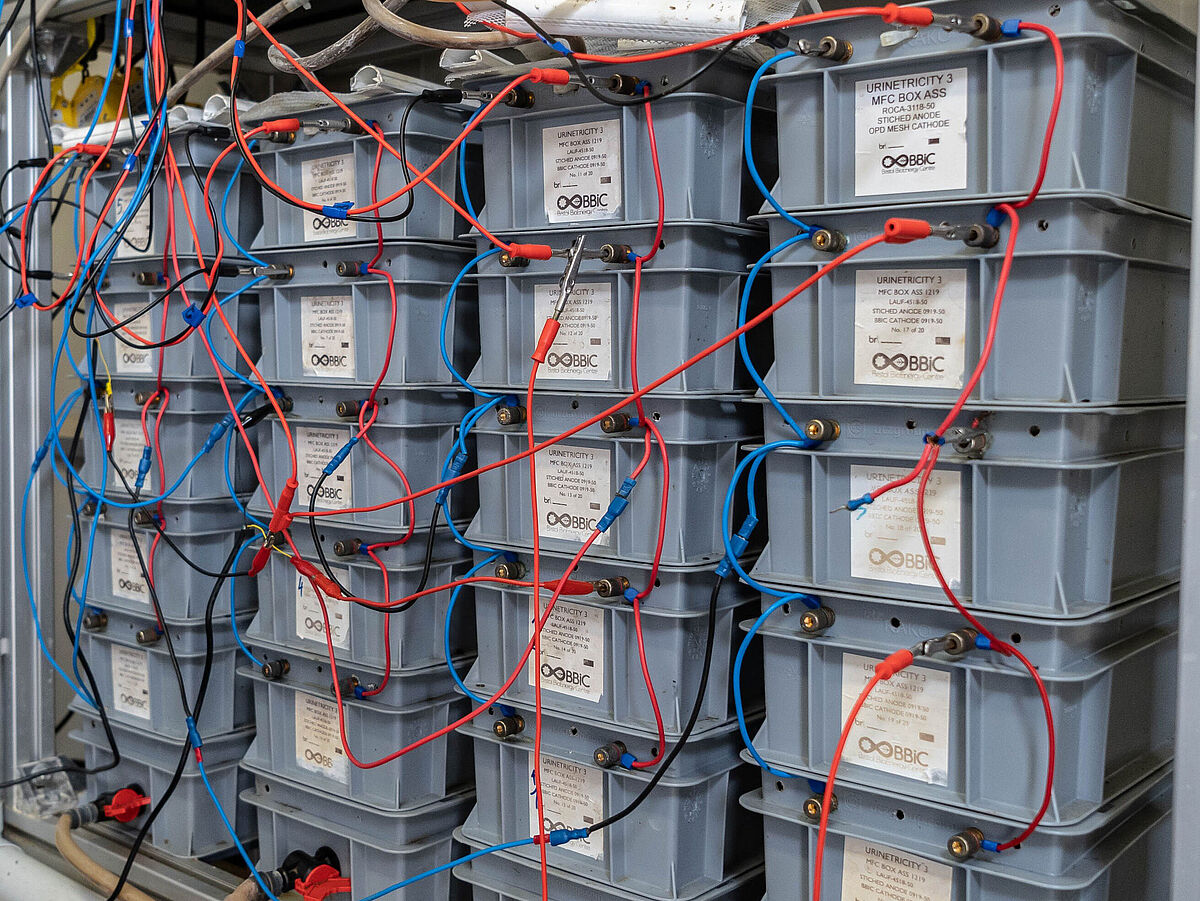 METs setzen genau hier an: Spezielle Mikroorganismen, die natürlich im Abwasser vorkommen, wandeln die darin enthaltene chemische Energie in elektrische Energie um, während gleichzeitig das Wasser gereinigt wird. Im Labor konnten bereits bis zu 35 Prozent der im Abwasser gebundenen Energie in Strom umgewandelt werden. Dass die Technologie auch in der Anwendung funktioniert, beweisen Pilotanlagen wie „Pee Power®“: 2015 versorgte sie mit Strom aus Urin die Toilettenbeleuchtung auf dem Glastonbury Festival. Langzeitstudien in Uganda, Kenia und Südafrika zeigten, dass solche Systeme auch größere Urinmengen zuverlässig aufbereiten – und durch beleuchtete Sanitäranlagen einen Beitrag zu mehr Sicherheit in Regionen mit unzureichender Infrastruktur schaffen.