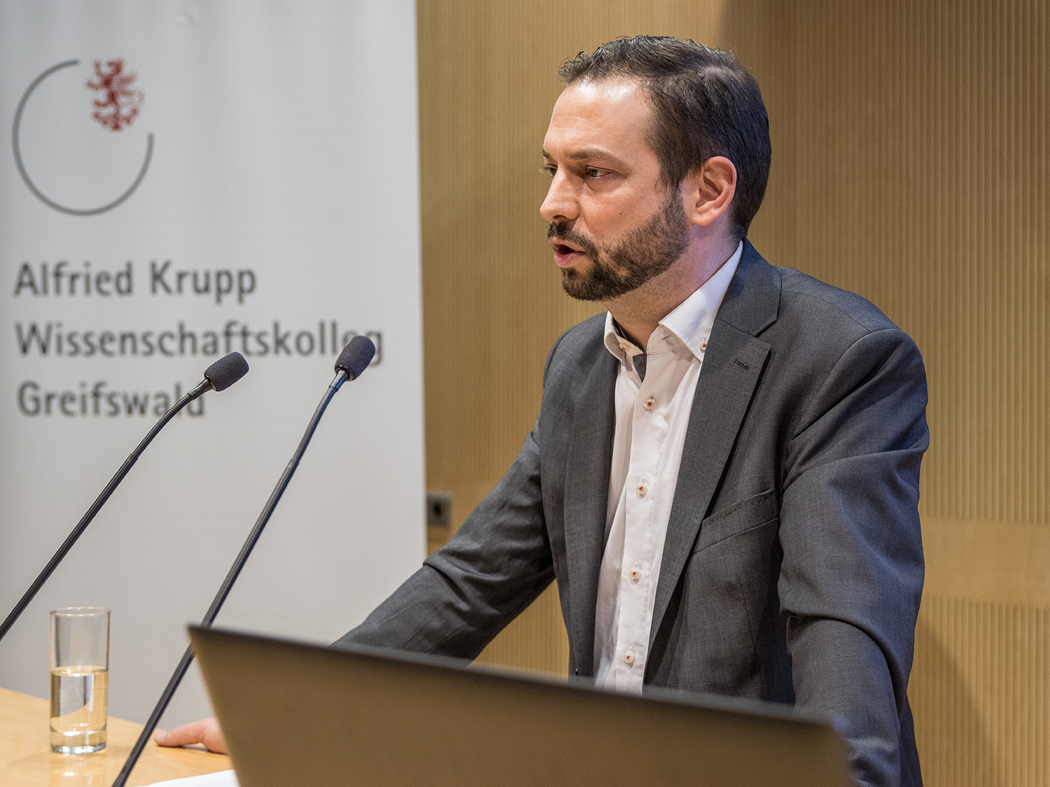 Das Alfried Krupp Wissenschaftskolleg bietet diese Veranstaltung auch live als Zoom-Meeting an, in dem sich Zuschauende über den Chat schriftlich beteiligen können.