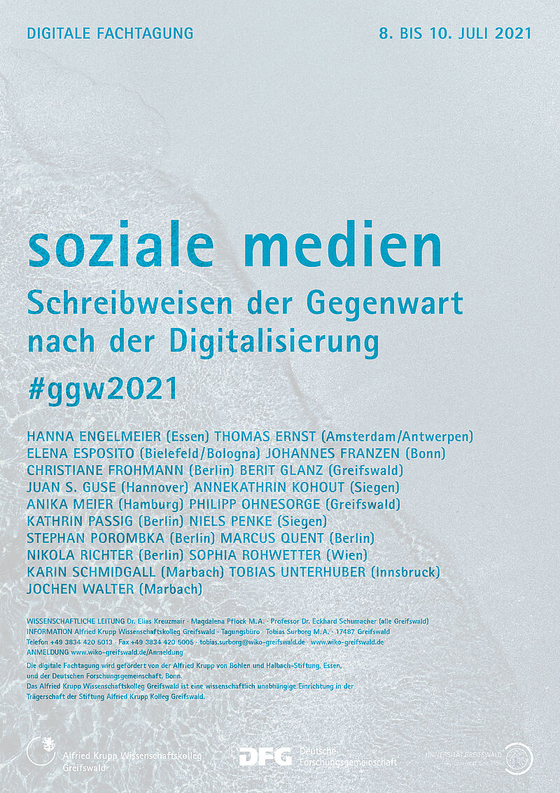Digitale soziale Medien haben die Wahrnehmung und Reflexion von Gegenwart und Aktualität wie auch die Möglichkeiten und den Status von Gegenwartsliteratur verändert. Diese Veränderungen wirken sich nicht nur auf Produktion und Rezeption, sondern auch auf die Wege und Möglichkeiten ihrer Publikation aus. Thema des Gesprächs mit den Verlegerinnen Christiane Frohmann und Nikola Richter sowie mit Sophia Rohwetter, Redakteurin des digitalen Literaturmagazins ­, wird das Verlegen und Publizieren mit und auf sozialen Medien sein. Im Fokus stehen im Zuge dessen Fragen nach publizistischen Entscheidungen im digitalen Raum zwischen „instantanem Schreiben“ (Frohmann), flüchtigen Tweets und dauerhafter Archivierung, zwischen gedruckten Büchern, E-Books und Apps.