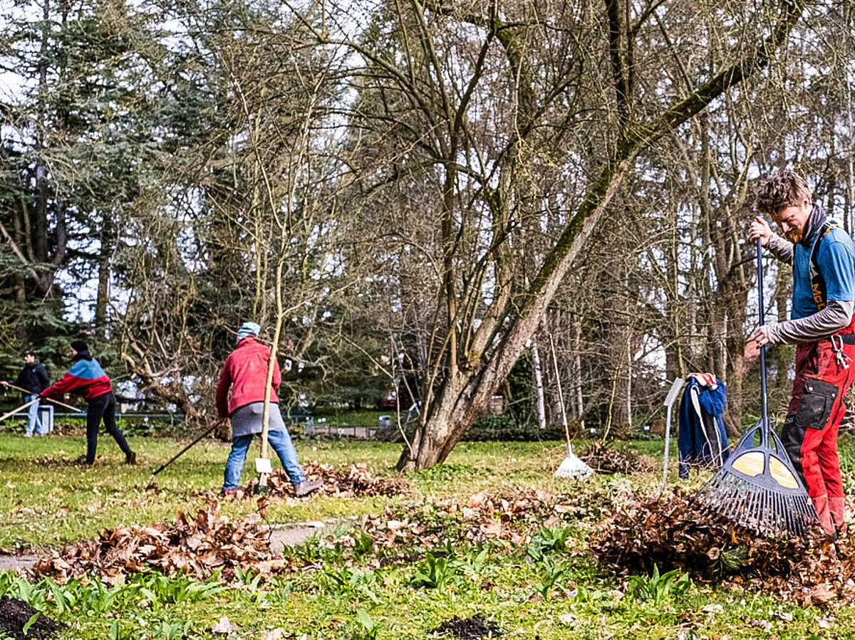 Was? Es sollen Wege und Rasenflächen geharkt sowie Bänke und Etiketten gereinigt werden.