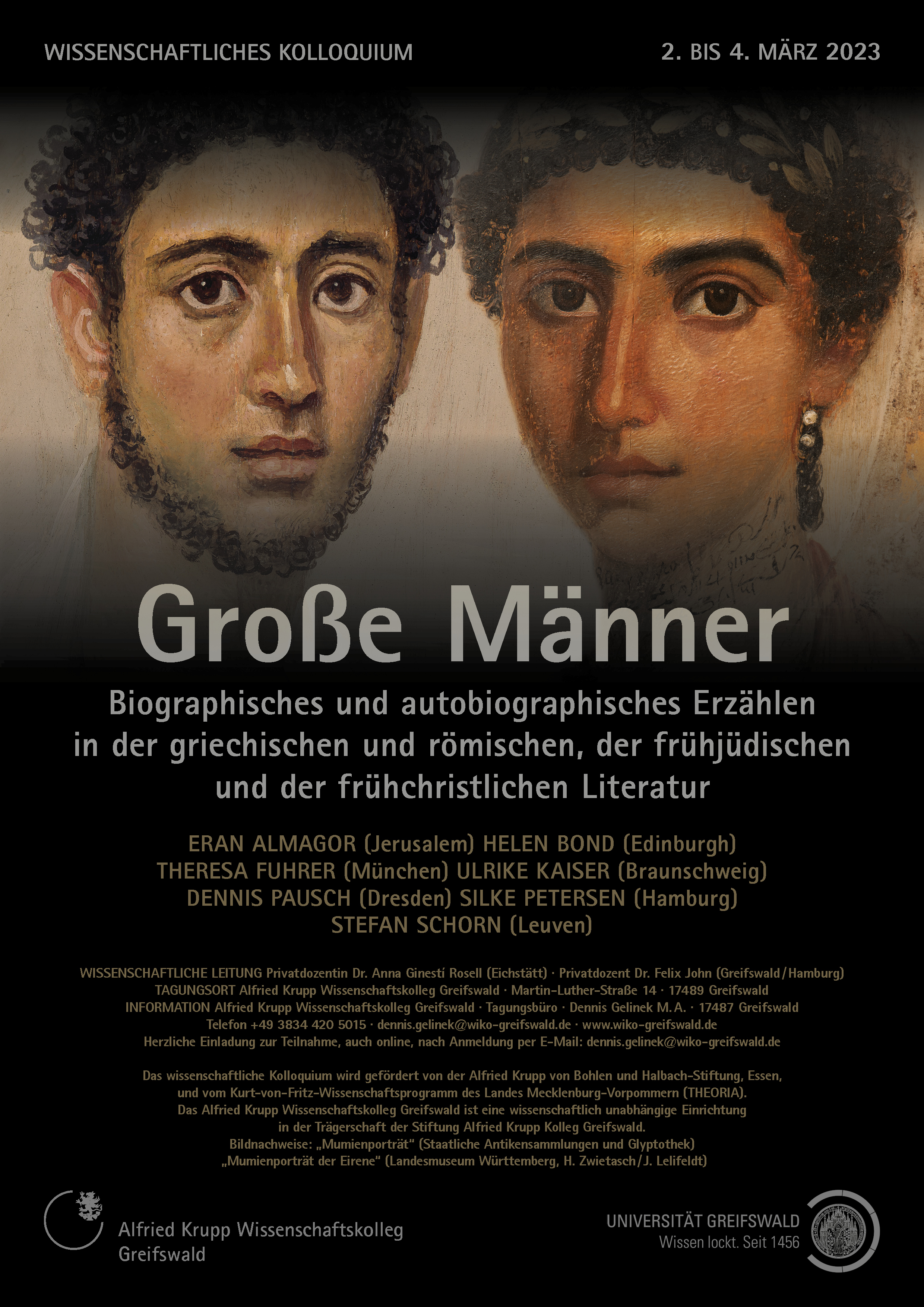 Das wissenschaftliche Kolloquium wird gefördert von der Alfried Krupp von Bohlen und Halbach-Stiftung, Essen, und vom Kurt-von-Fritz-Wissenschaftsprogramm des Landes Mecklenburg-Vorpommern (THEORIA).